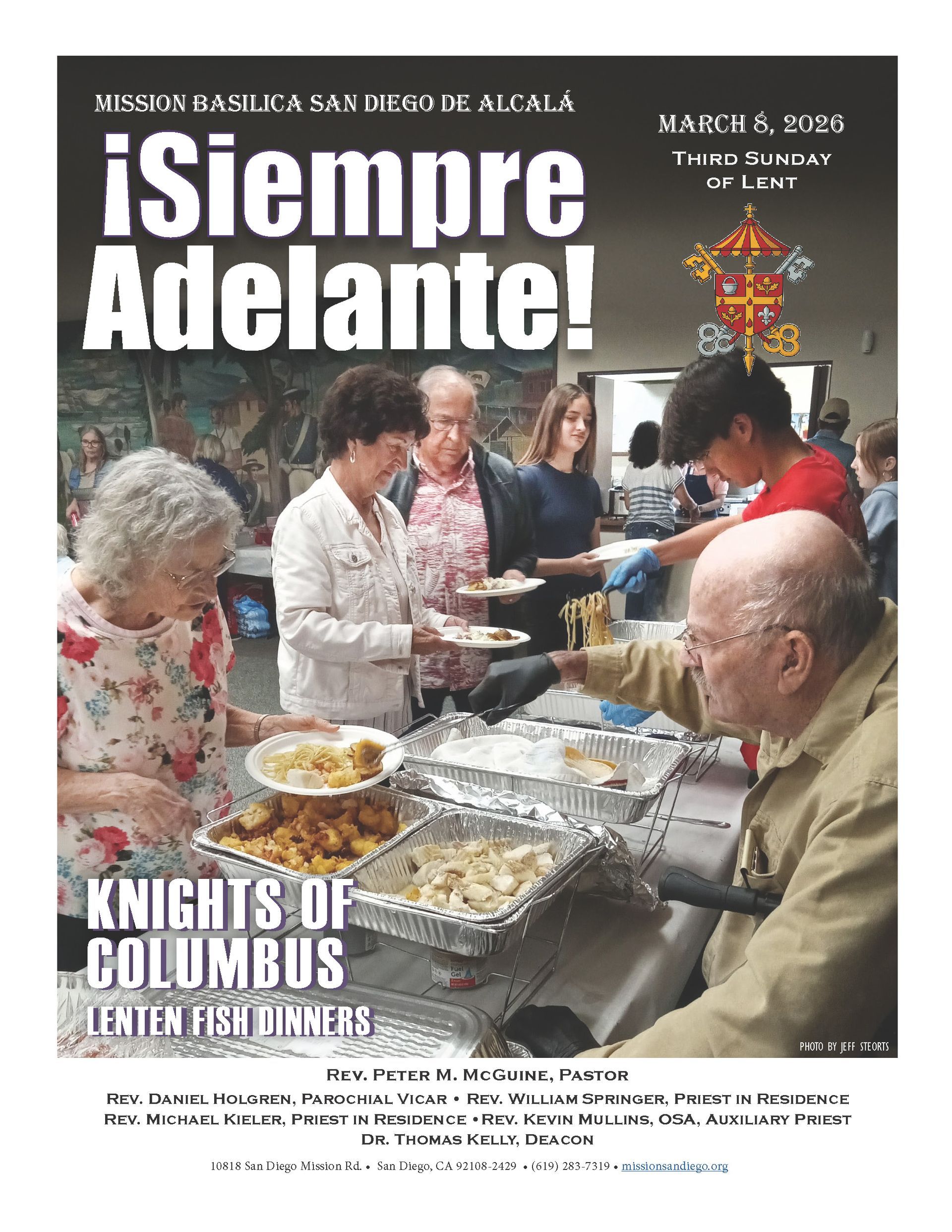 The Knights of Columbus and Columbiettes sponsor dinners from 5:00 pm to 7:30 pm in the California Room. Pay at the door. $20 adults, $10 children up to age 11.